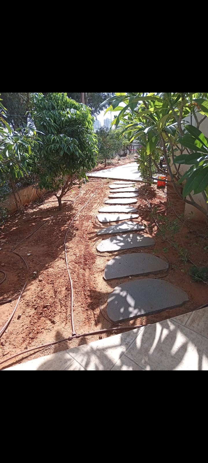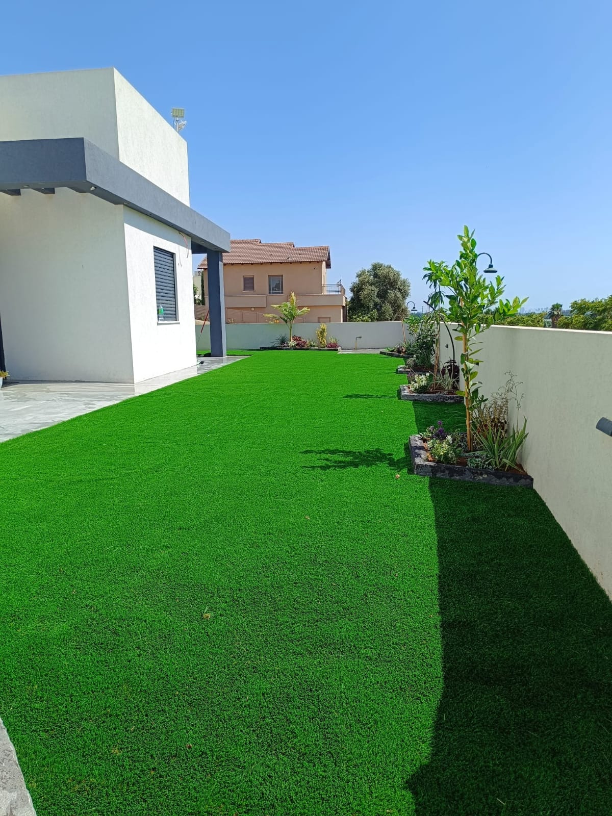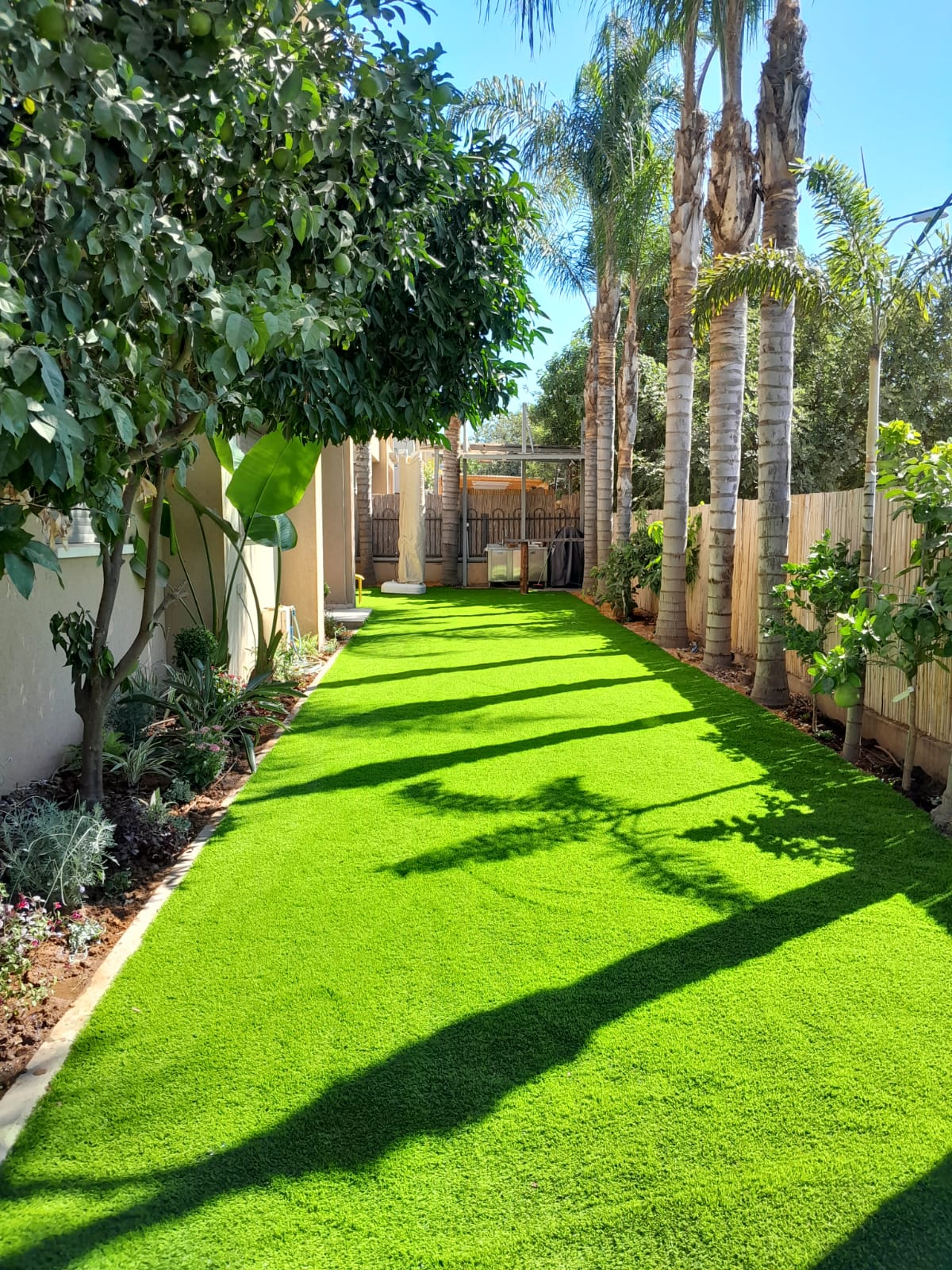העצים בגינה נועדו לספק צל טבעי וקריר, מראה ירוק וחיבור לטבע.
