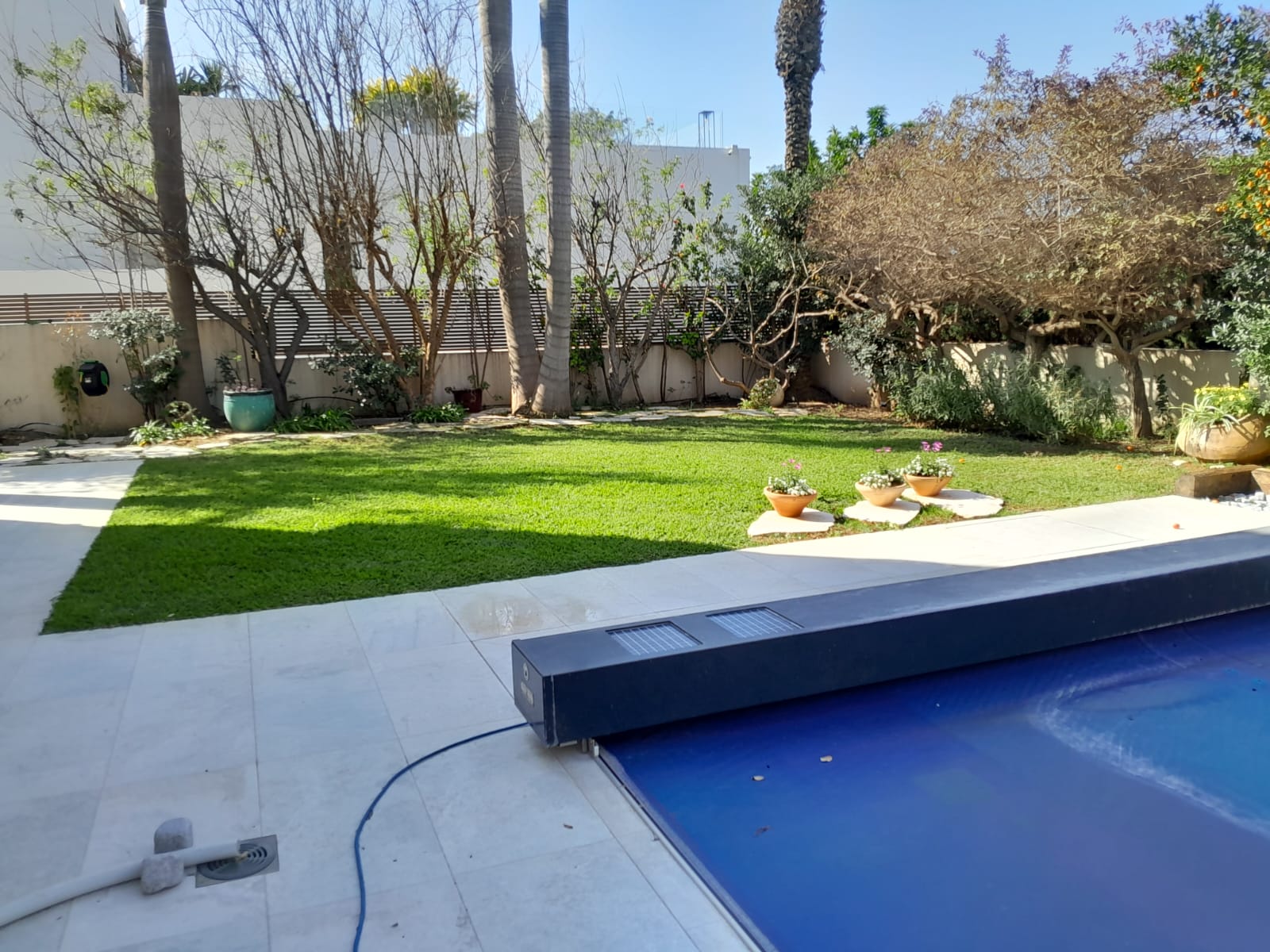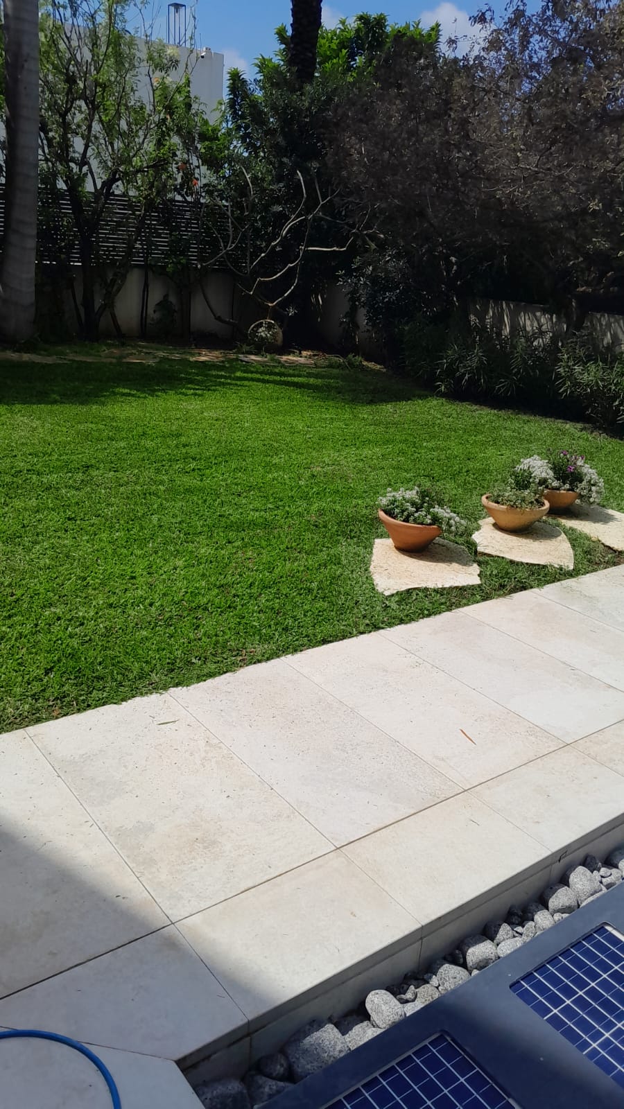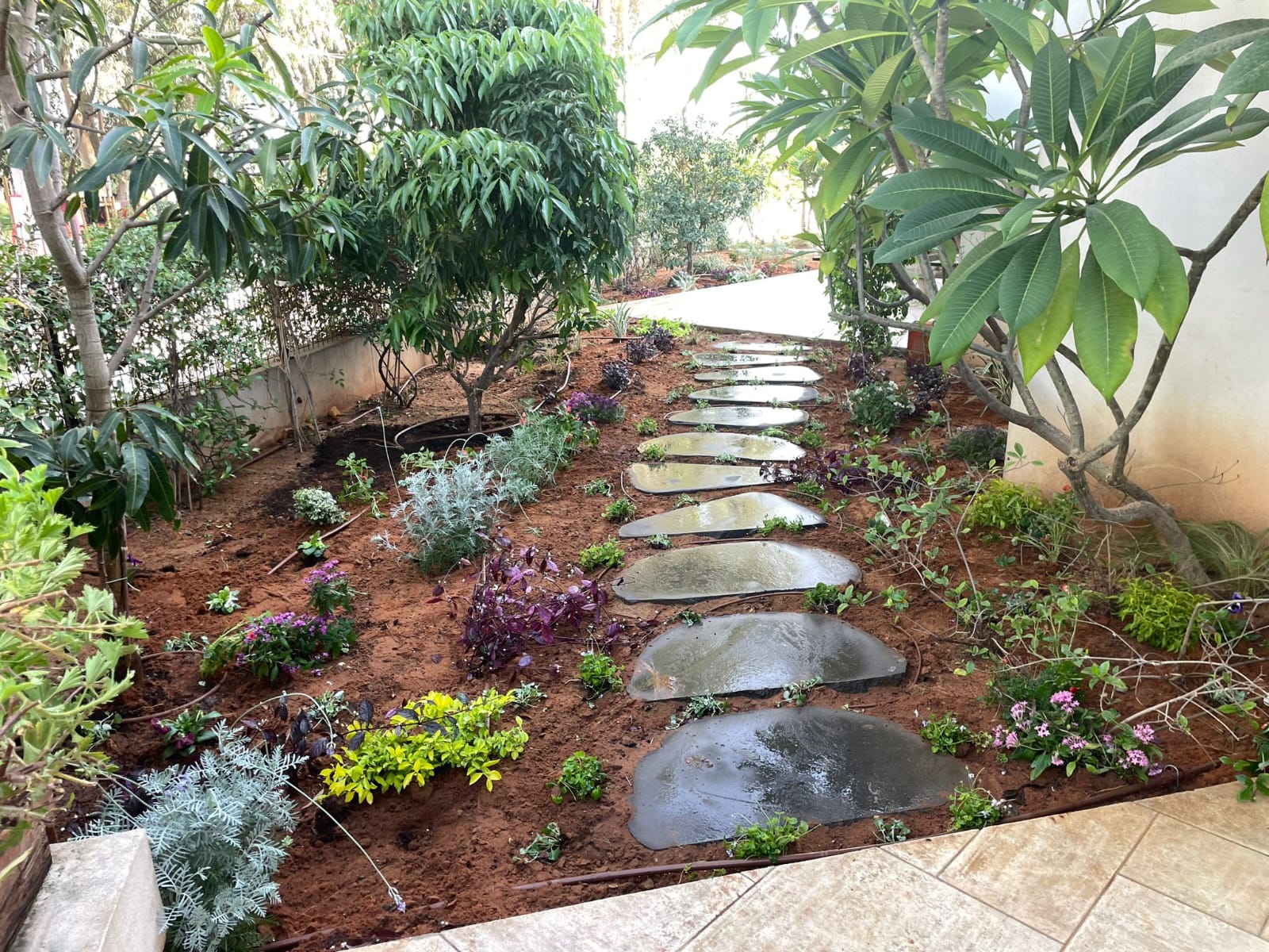 העצים בגינה נועדו לספק צל טבעי וקריר, מראה ירוק וחיבור לטבע.